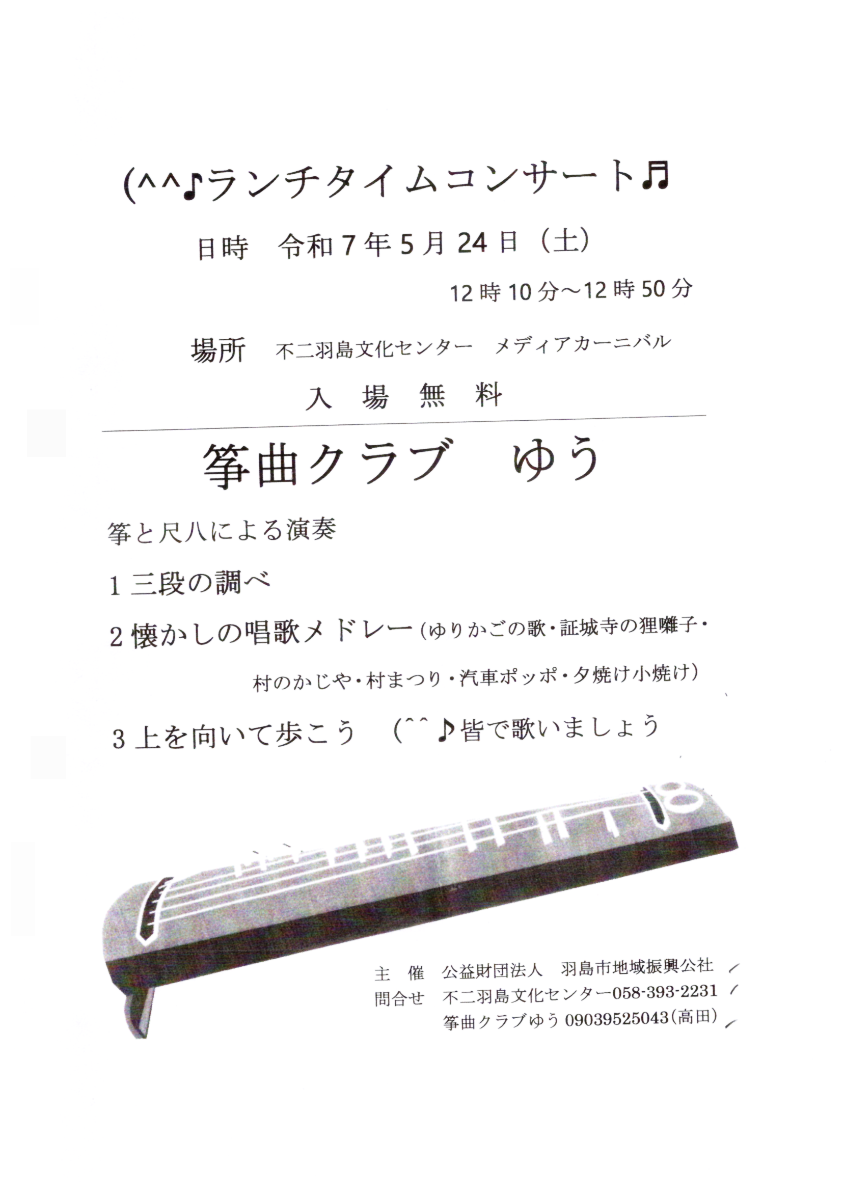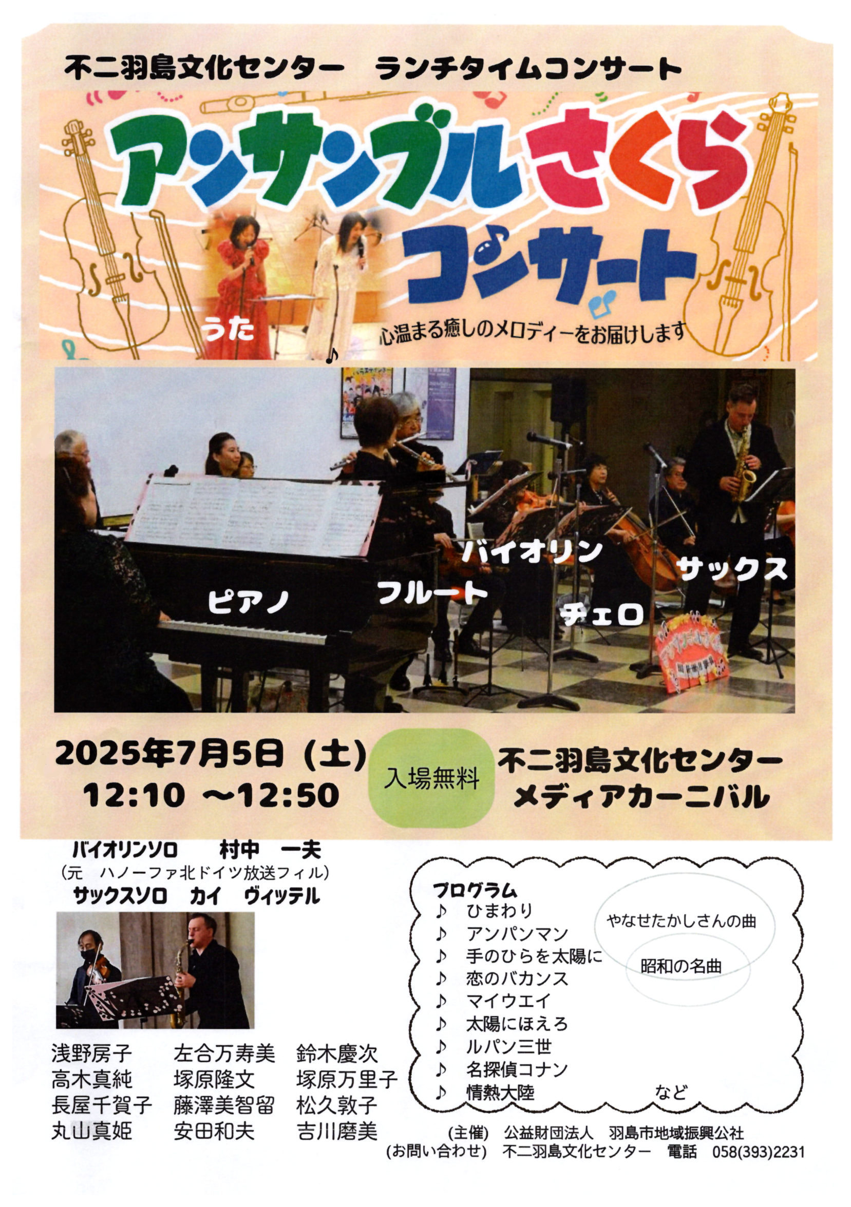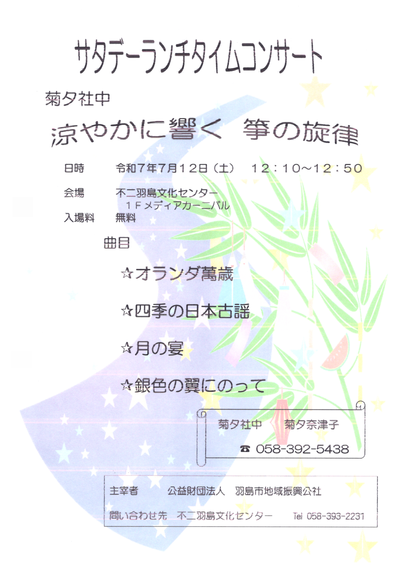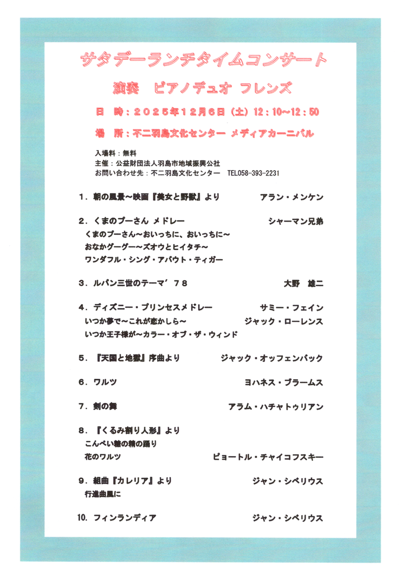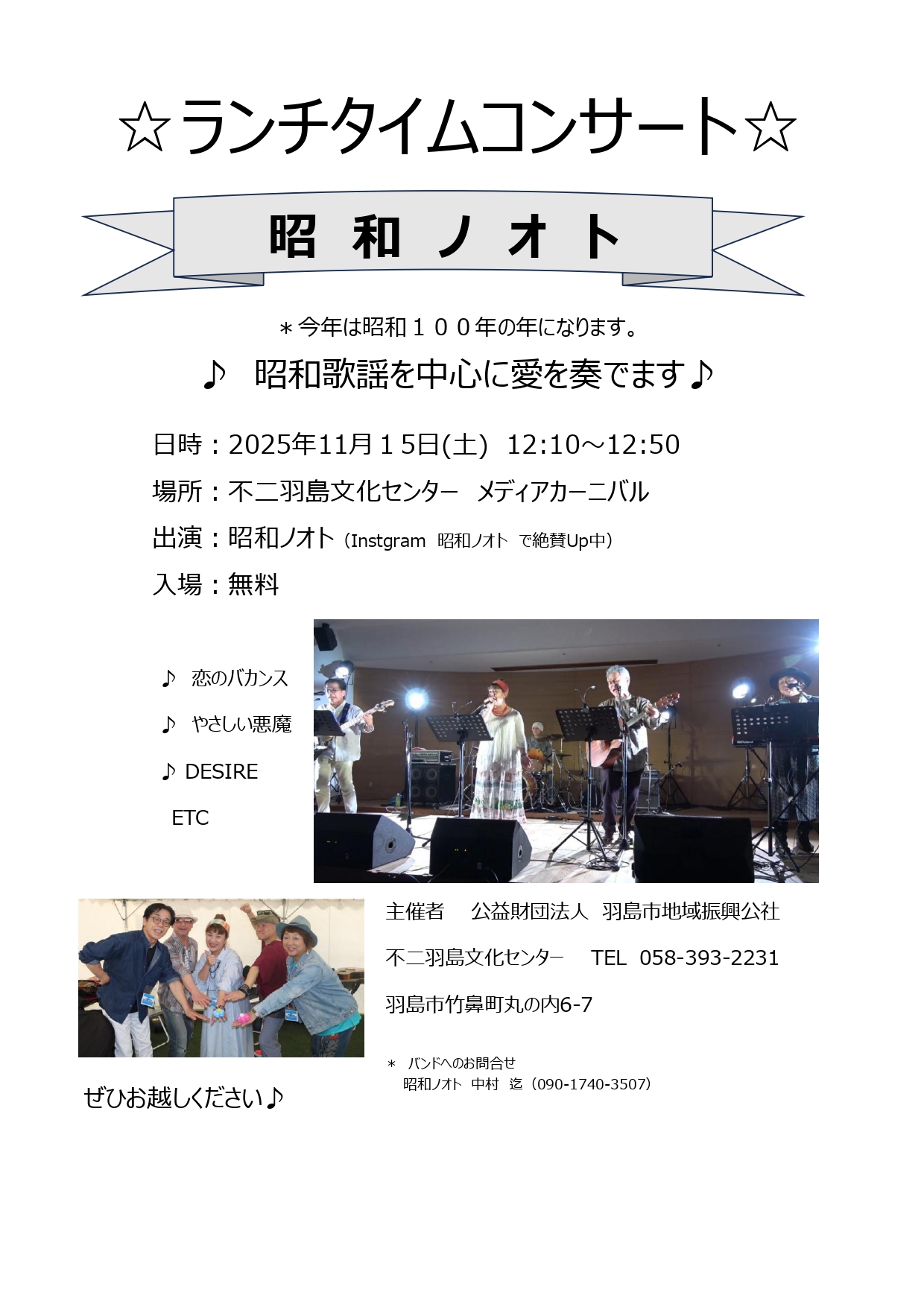 不二羽島文化センター1階メディアカーニバル(ロビー)で開催する観覧無料のコンサートです。
