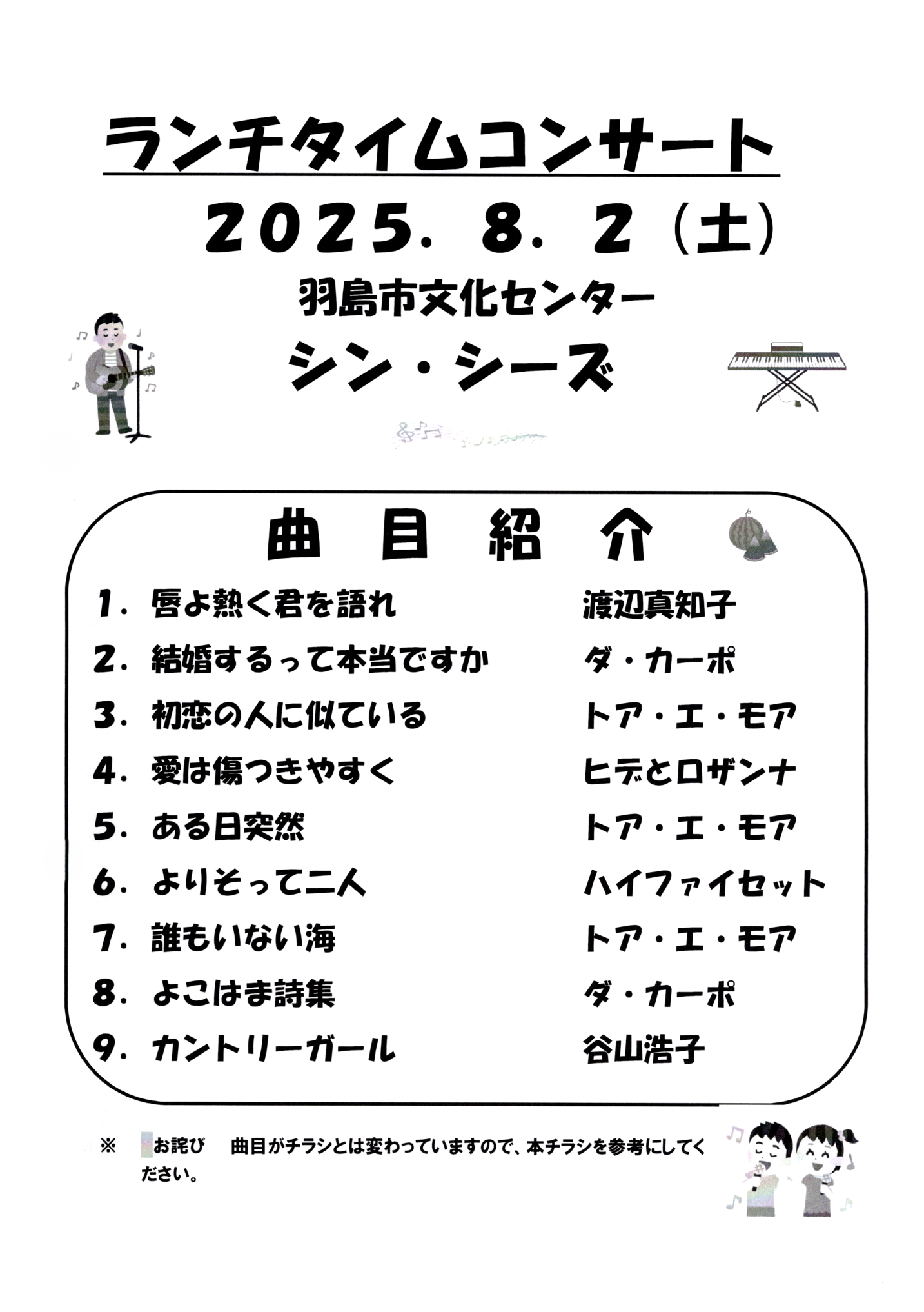 ぜひご来場いただき、土曜日のランチタイムを楽しくお過ごしください。