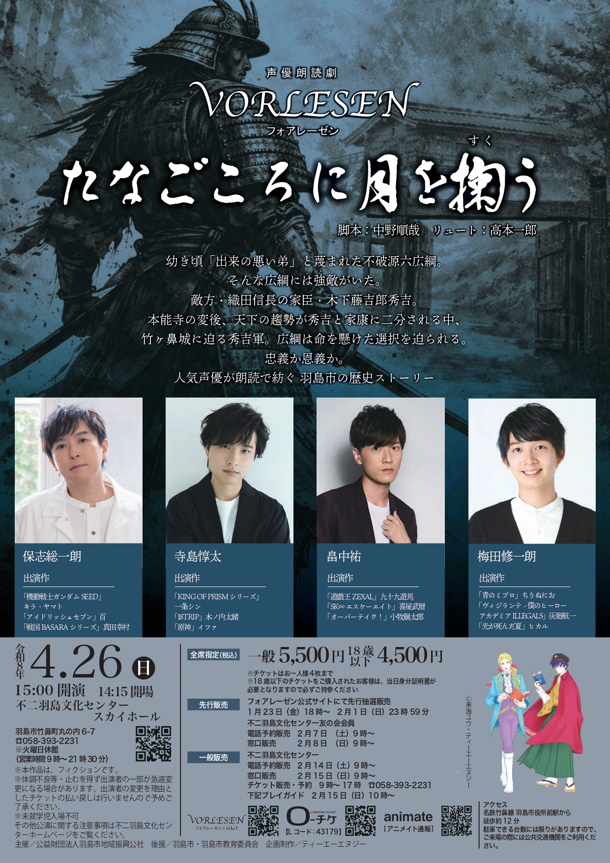 画像をクリックで拡大します。 あらすじ 【出演者】 保志総一朗、寺島惇太、畠中祐、梅田修一朗、高本一郎(リュート) ※注意事項 ※出演者への贈り物について ■スタンド花 ■卓上花 発送先住所 【贈り物の注意事項】 【お問い合わせ】 |